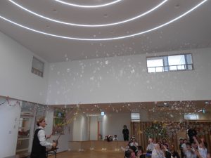 シャボン玉おじさんをお招きし、シャボン玉ショーを披露していただきました。