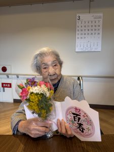 100歳の記念すべき日を迎えられた事を大変嬉しく思います。これからも健康で穏やかな時間をお過ごし下さい。